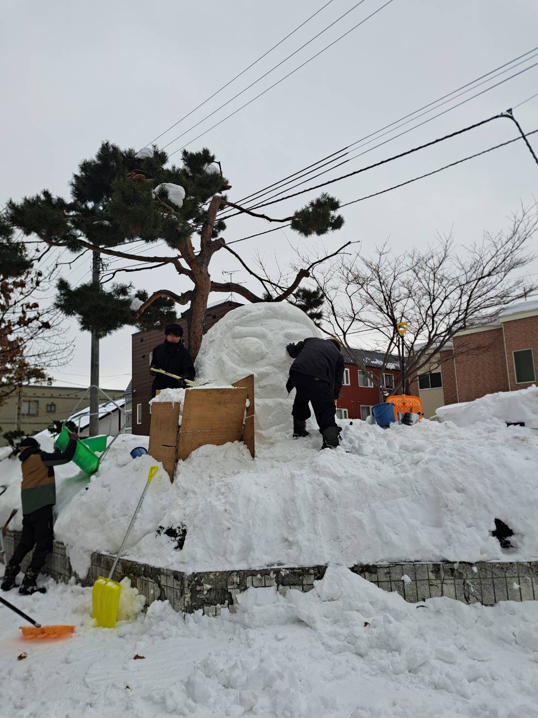 毎年恒例となっております柏丘中学校おやじの会の方々によります私立高校合格祈願雪像を作成いただきました。今年度の私立高校合格祈願は「左馬」がテーマです。『左馬:左から乗馬すると落馬の危険も少なく安全であることから「万事が順調にいく」という意味で縁起が良いとされている』との願いから作成いただきました。朝は氷点下10度、夕方は降雪の天候の中、おやじの会の方々に作成いただきました、ありがとうございました。毎年、柏丘中学校以外の方々にも合格祈願にお越しいただいております。皆様の願いが成就されることをお祈り申し上げます。