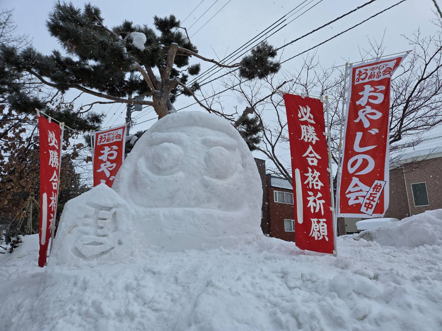 【柏丘中学校合格祈願雪像】